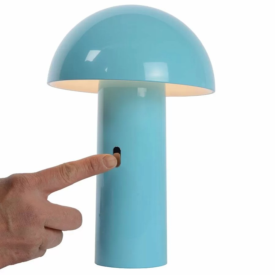 Leuke oplaadbare lamp in blauwe uitvoering. Het kapje is makkelijk te kantelen en met een makkelijk te bedienen met een drie standen touch knop.